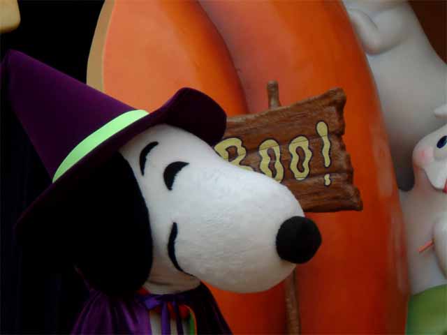 USJはハロウィンで、いろんなものがハロウィン仕様になってるよ。(仕様?) もちろんスヌーピーだってかわいい仮装してたよ。マント着てとんがり帽子かぶって。 一緒に写真を撮るのは間に合わなくて無理だったけど、スヌーピーだけを撮ってみたよ。かわいいのぅ。 |