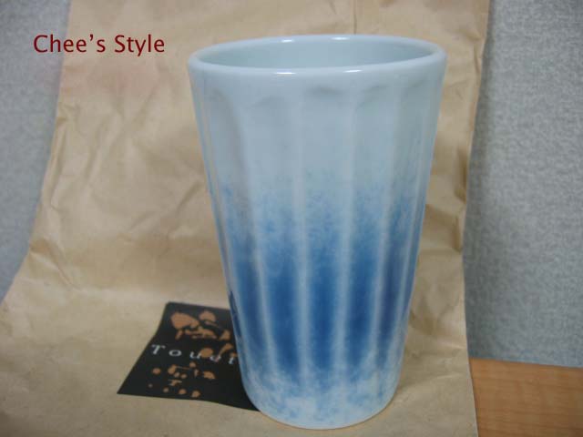 奈良のおみやげに買った吉野葛餅を本部に持って行きました。 食べる30分前に冷蔵庫に入れて冷やして、ぷるんぷるんの葛餅をいただきました。 はっしーからは、陶悦窯ってとこのカップ(一口ビア?湯飲み?)をもらいました。 わーい!さんきゅ! って大喜びしてたら「自分の徳利と猪口を買ったら、オマケでつけてくれた」だって;; いいよ、オマケでもっ。 |