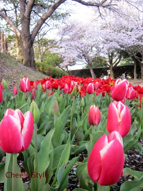 本部でジーンズに着替えて、痩せる靴に履き替えて、ウォーキングがてらお花見に出発。