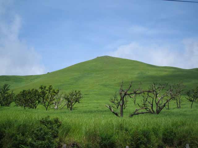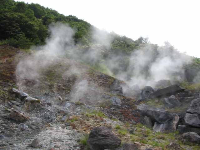 はっしーおすすめの、小松地獄。煙(湯気?)もすごいし、硫黄のにおいもすごい。 熱いよー。そりゃ温泉もわくっての。 小松地獄のあとは、緑の山を見ながらドライブモード。 ■小松地獄写真集 |
