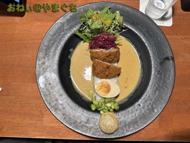 メインプレート(グリーンサラダ、紫キャベツのピクルス、ヒレカツ、半熟味たま、枝豆バター、パニプリ)