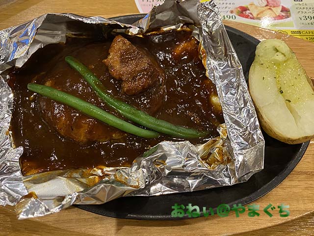 濃厚ビーフシチューの包み焼きハンバーグ110g 979円。